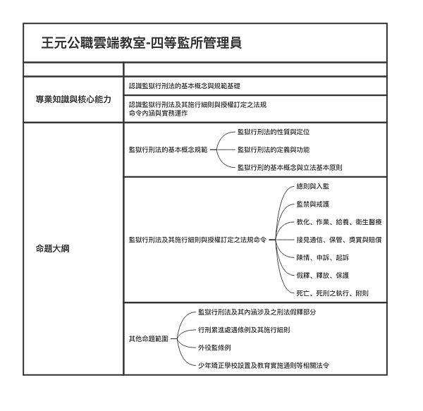 四等監所管理員「監獄行刑法概要」命題大綱為: