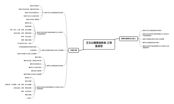 由於考生有三等四等,其對應之監獄行刑法細項有些不同,故雲端教室幫考生整理成心智圖如上(可自行下載唷!)